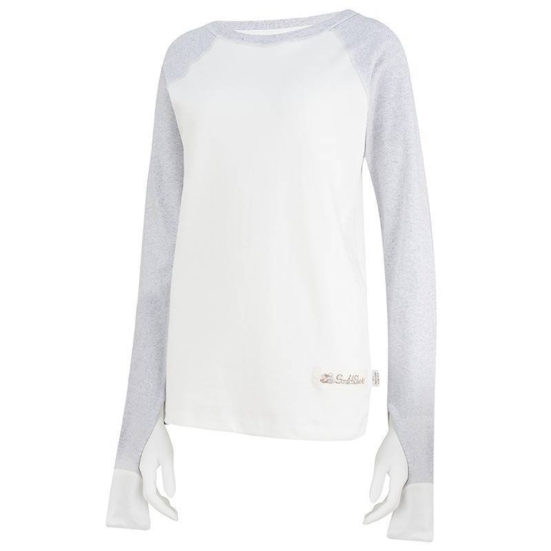- Soft ribbed neckline, with ‘inside-out’ neck and shoulder seams keeping the inside smooth and non-scratchy.