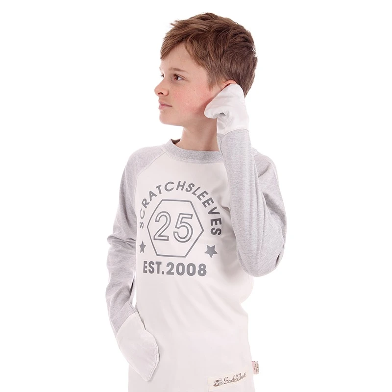 - Effective scratch mitt pyjama tops for children and teens with eczema but equally effective in combating scratching at other skin irritations, including chicken pox and post surgical healing, hair-pulling, thumb-sucking, protecting feeding-tubes, and much more.