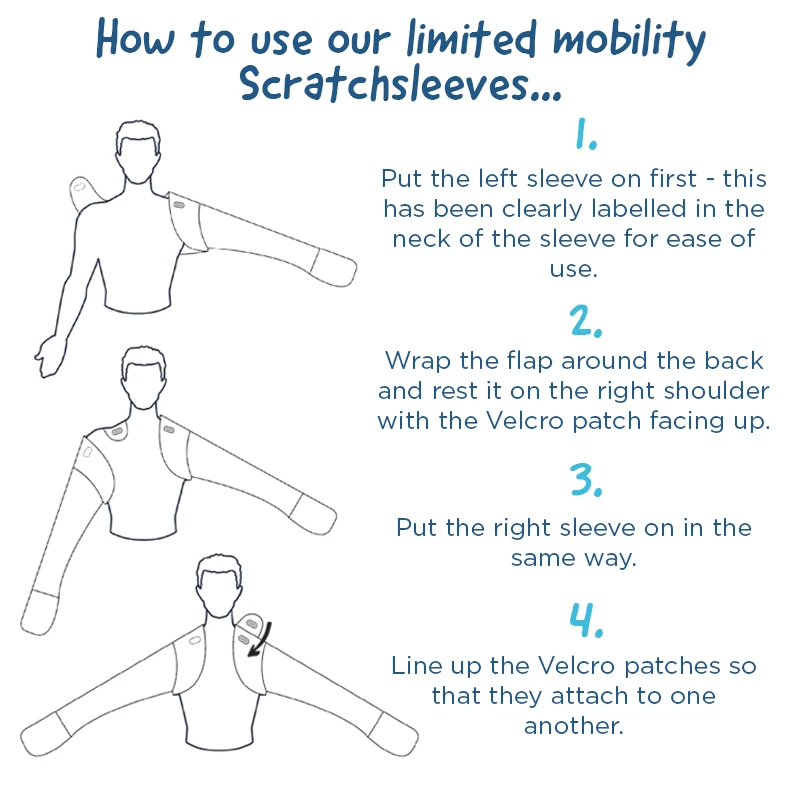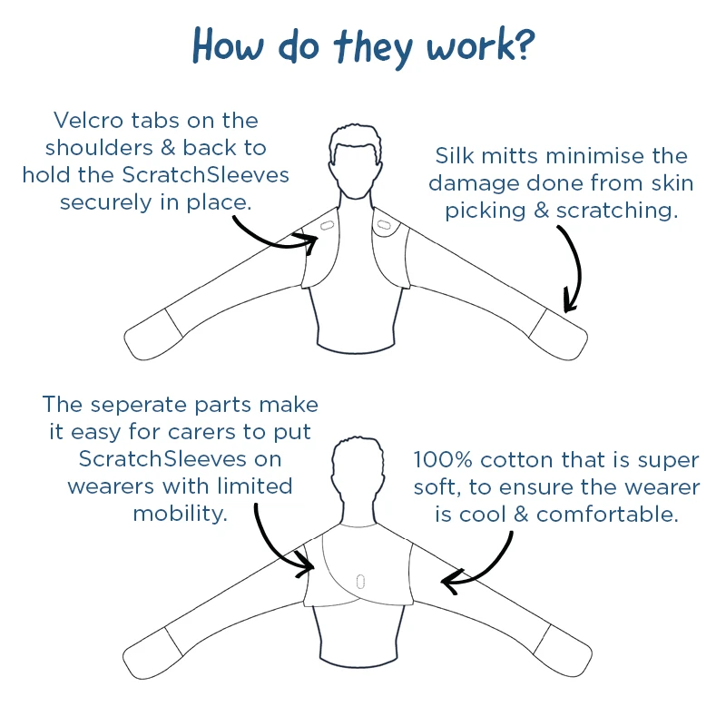 • Our two part ScratchSleeves stay firmly in place while still being quick and easy to put on. Perfect for carers, particularly in cases when the wearer has dementia or has had a stroke, resulting in limited mobility. Especially good for elderly wearers.