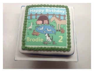 If you’re not feeling particularly creative there are plenty of companies that will print a picture on to icing for you to just pop on the top of your cake. The icing is mainly cornstarch and sugar and the inks are vegetable based.