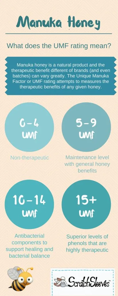 There are different antibacterial strengths of Manuka honey so in order to guarantee that the honey is of medicinal quality, there is a trademarked rating system called the Unique Manuka Factor (UMF).
